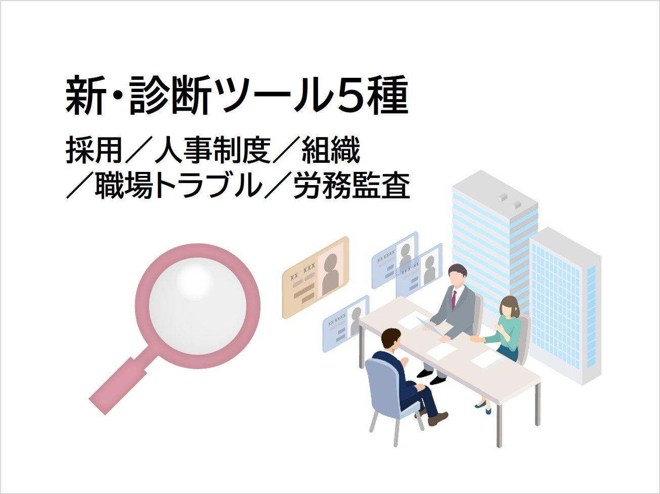 【診断ツール5種】採用/人事制度/組織/職場トラブル/労務監査